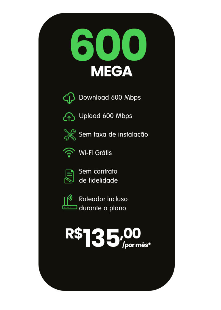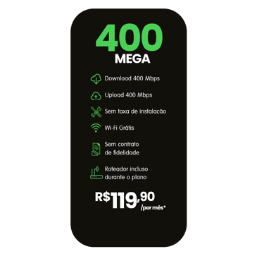 O plano de 400 mega é ideal para quem usa a internet para trabalhar em casa, fazer videoconferências e enviar arquivos grandes. Com essa velocidade, você pode baixar um jogo de 50 GB em menos de 10 minutos. Além disso, é possível fazer streaming de vídeos em 4K sem interrupções.