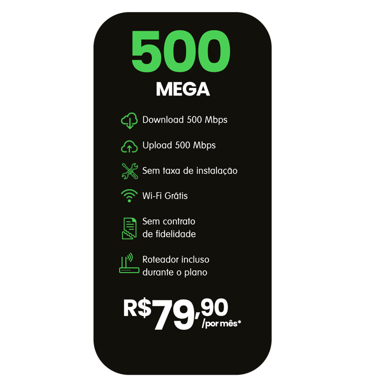 O plano de 500 mega é ideal para quem usa a internet para navegar na web, acessar e-mails e redes sociais, e fazer streaming de vídeos em alta definição. Com essa velocidade, você pode baixar um filme em menos de 2 minutos. Além disso, é possível jogar online sem lag e sem atrasos.