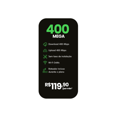 O plano de 400 mega é ideal para quem usa a internet para navegar na web, acessar e-mails e redes sociais, e fazer streaming de vídeos em alta definição. Com essa velocidade, você pode baixar um filme em menos de 2 minutos. Além disso, é possível jogar online sem lag e sem atrasos.